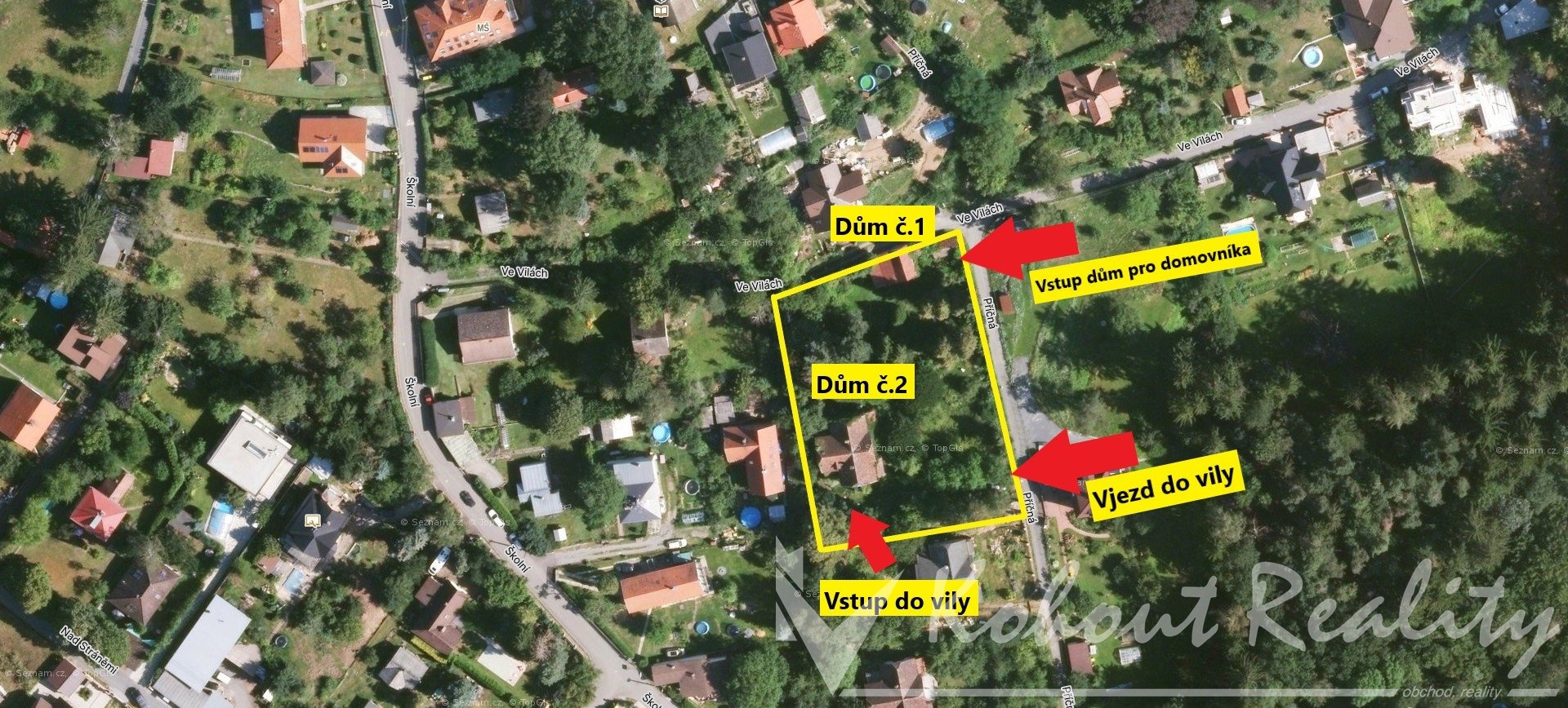 Nemovitost se nachází v klidné ulici Příčná, v prestižní vilové čtvrti Na Smilovci, obklopené zelení, výhledy do krajiny a noblesní architekturou přelomu 19. a 20. století.