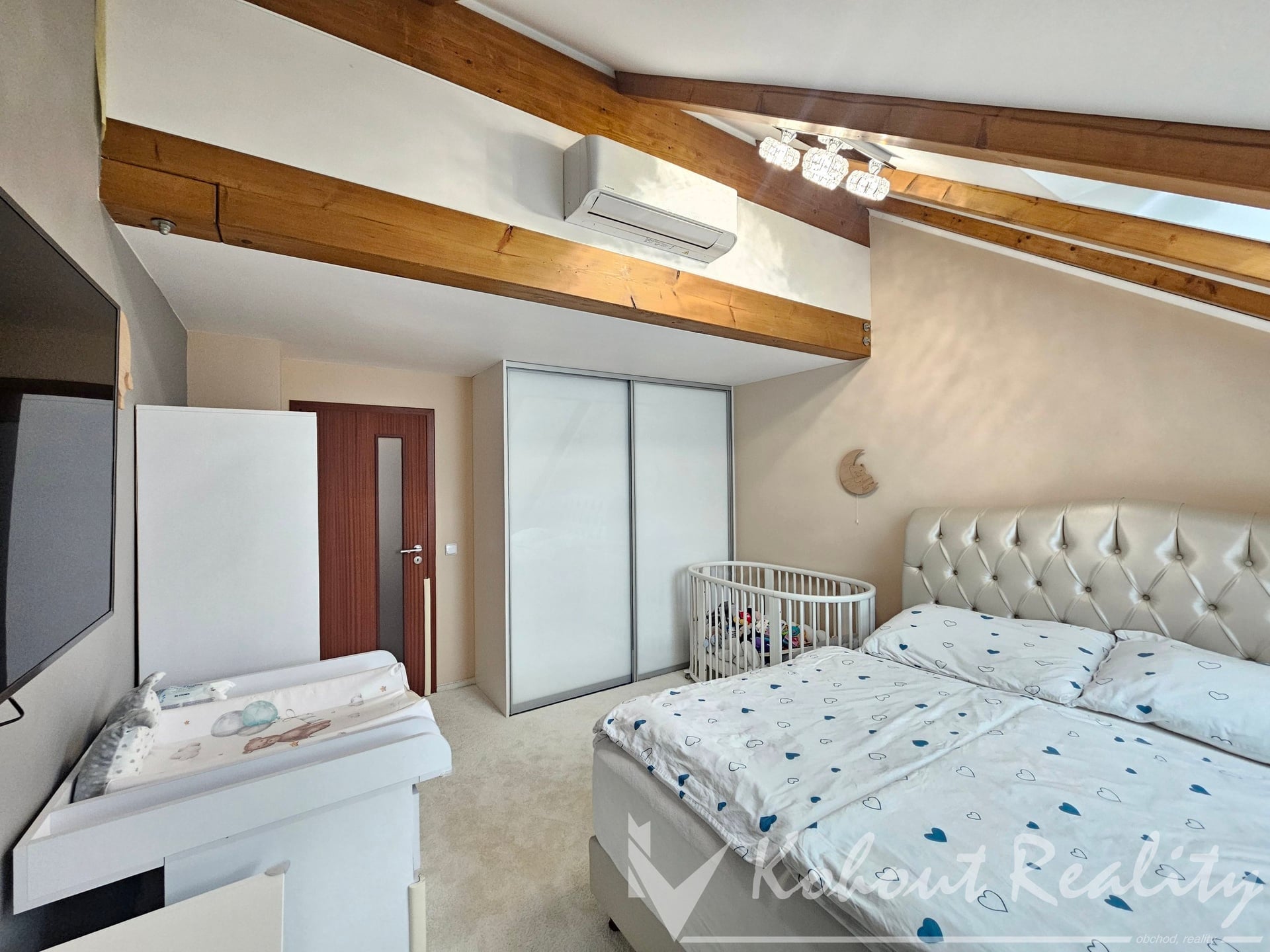 2. patro – tři ložnice s vestavěnými skříněmi a klimatizací, koupelna s WC, technická místnost