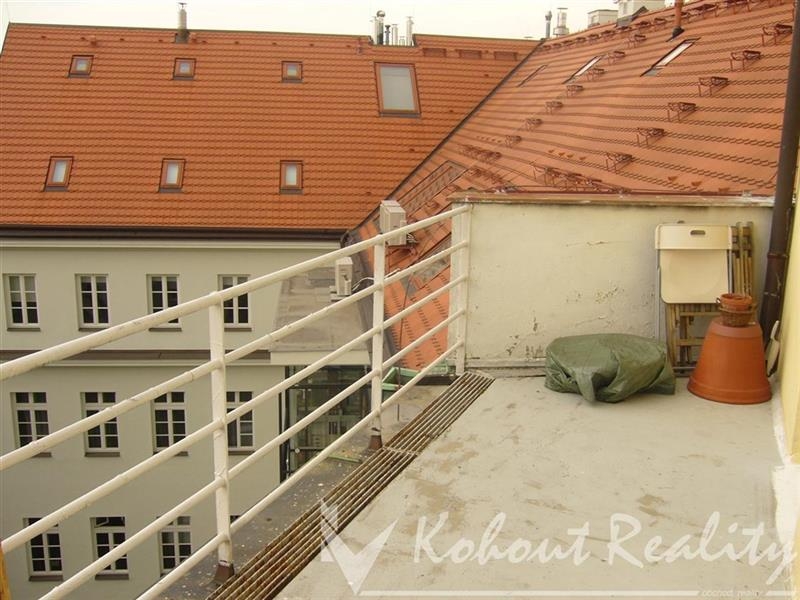 Pronájem garsonky, 28m2 s velkou terasou 20m2- s výhledem do vnitrobloku a na velkou část Prahy 1. Byt se nachází v cihlovém domě z 30. let, v 5. patře pětipodlažního domu. Byt je vybaven vestavěným nábytkem, vyklápěcí postelí, kuchyňskou linkou se sporákem, ledničkou. Koupelna s masážním sprchovým koutem a oddělenou toaletou. Součást vybavení je i pračka. Na podlaze parkety, topení ústřední. V domě je nový výtah. Měsíční nájemné 10.500,-Kč včetně všech záloh. Byt je volný od 1.8. Těším se na Vás Veronika