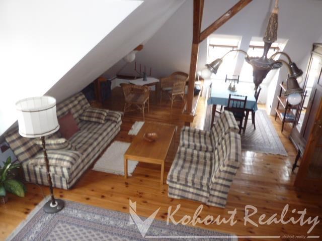 Nabízíme krásný vkusně zrekonstruovaný podkrovní byt řešený jako mezonet ve vilové čtvrti v blízkosti metra Jinonice a Butovice - do deseti minut pěšky. Byt tvoří předsíň, obývací pokoj, prostorná koupelna, kuchyň a mezonet na spaní. Byt má dřevěné podlahy, dveře z masívu. Byt je plně vybaven nábytkem a spotřebiči. Byt je vhodný pro dvě až čtyři osoby - ne pro děti. Čistý nájem je 11 000,- Kč, 3000,- Kč (zálohy pro dvě osoby), kauce dle dohody a provize RK. Těšíme se na prohlídku. Veselý