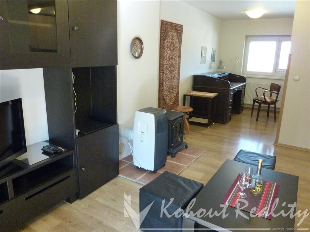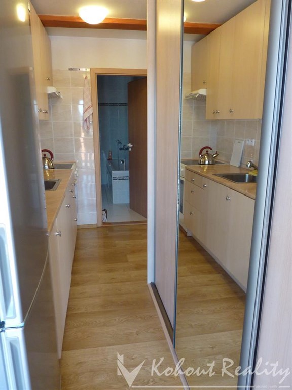 Nabízíme velmi příjemný, moderní byt v podkroví RD se samostatným vchodem o vel. 1+k.k./B 38m2 ve vilové čtvrti. Je plně zařízen nábytkem - sedací souprava, válenda, vestavěné skříně, kuch. linka vybavena nádobím, el. sporákem, mikr. trobou, ledničkou a pračkou. Byt je vytápěn vlastným plyn. kotlem. Dále jsou zde litinová kamínka a chladící jednotka v případě horkých letních dnů. Z bytu je krásný výhled na Prahu. Autobus včetně občanské vybavenosti v blízkosti 5 min. od domu. Byt je vhodný pro jednu osobu. Doporučuji !