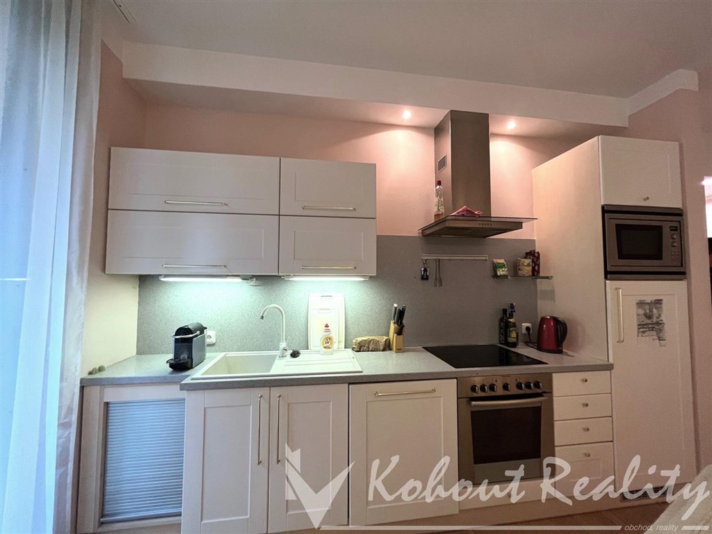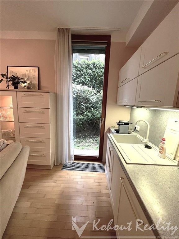 Nabízíme velmi pěkný 2+kk. - 65m2 s předzahrádkou okolo celého bytu do tvaru L. Byt je vybaven nábytkem. Komplentě zařízená kuchyňská linka - sporák, sklokeramická deska, myčka, mikrovlnná trouba a digestoř. Dále v bytě zústává manželksá postel, skříně, v obývacím pokoji sedací souprava 1ks komody a vytrínová skřín. Koupelna je společně s WC se sprchovým koutem a pračkou. Na podlahách jsou parkety a dlažby. K bytu náleží i prostorný sklep. Byt je situovaný na JV a JZ se zahrádkou do tvaru L s možností výstupu z kuchyně, obýváku i ložnice. Lze si upravit zeleň dle svého. Byt se nachází ve velmi klidné lokalitě poblíž metra Anděl - cca 5 min. pěší chůze. Byt má samostatné plynové topení tj. plynový kotel. Doporučujeme doporučujeme vzhledem k výborné dostupnosti a občasnké vybavenosti v okolí.